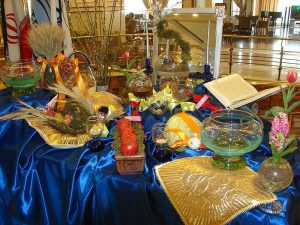 Garlic (sir) is a symbol of health and well-being. Coin (sekkeh) stands for wealth and richness in the forthcoming year. Apple (sib) represents happiness and smile. Hyacinth (sonbol) signifies success and progress. Wheat or lentil sprouts (sabzeh) corresponds with greenness and peace. Oleaster (senjed) indicates a wish for friendship. And wheat germ pudding (samanu) signals sweetness.