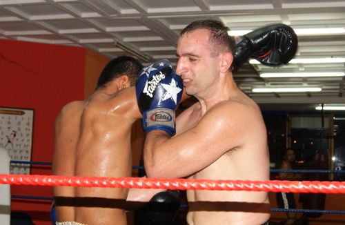 In our gym in Cambodia, Paddy’s Fight Club, we have a core of about five or six guys who are like me. They have had some pro-fights or amateur fights, they train as pros, five days per week, religiously, but don’t intend on making fighting a career. We also have five or six resident pros, and we spar with them regularly. And, the Cambodian version of the TV show, “The Contender” called “Kuhn Khmer Champion” is shot in our gym. The contestants are fourteen extremely tough Khmer boxers with ten or less professional fights behind them. We, the guys in my category, are expected to be able to spar with those guys, but not be able to beat them in a pro bout.