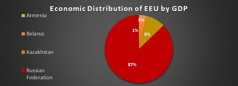 Undoubtedly, the EEU will further pull participating nations into a dependent relationship with Russia. While economic ties will grow both ways, the sheer economic size of Russia will tower over its fellow EEU members. This will afford it greater leverage over its fellow members. Russia accounts for a staggering 87% of the EEU’s GDP.
