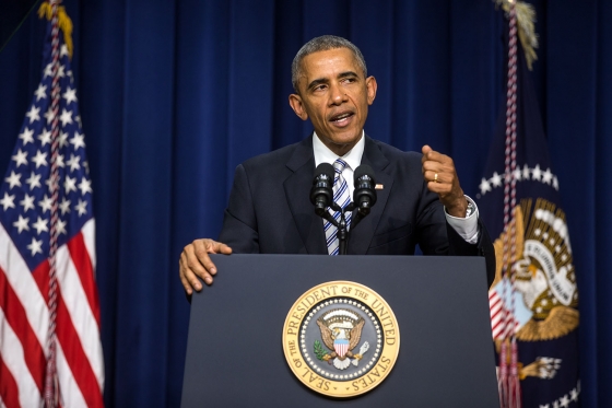 President Barack Obama delivers remarks during the White House Summit on Countering Violent Extremism, in the Eisenhower Executive Office Building South Court Auditorium, Feb. 18, 2015. (Lawrence Jackson/White House)